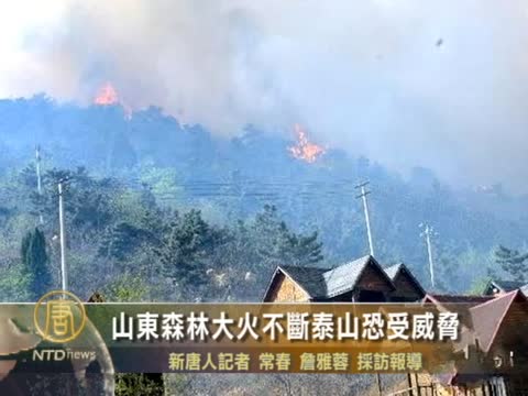 【新唐人2011年4月19日訊】中國山東由於持續乾旱,萊蕪、濟南等地自16號以來相繼發生森林大火﹔濟南泰安交界森林,18號上午發現多個起火點,由於風勢大,火情難以控制,火勢向泰山方向蔓延,目前,泰安方面正在設置隔離帶,以防火勢擴大。