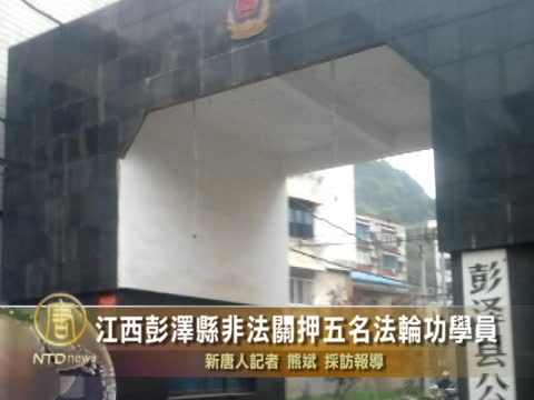 【新唐人2011年4月20日訊】江西彭澤縣五名法輪功學員上月底在東升鎮發真相資料時遭東升派出所警察綁架,現被非法關在縣看守所,禁止家屬探視,家屬和親友指控中共迫害信仰自由,呼籲外界關注。
