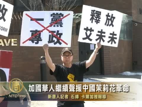 【新唐人2011年4月25日訊】4月24號下午,加拿大卡爾加里的一群華人在中共駐卡爾加里領事館門前集會,繼續聲援中國大陸的“茉莉花革命”。請看本臺報導。