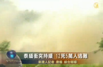 【新唐人2011年4月26日訊】星期二,柬埔寨和泰國的邊界衝突進入到第五天,機關鎗與迫擊砲等槍砲聲繼續傳出。數天以來的衝突,已經造成12人死亡,5萬人被迫離開家園,被疏散到臨時庇護所。