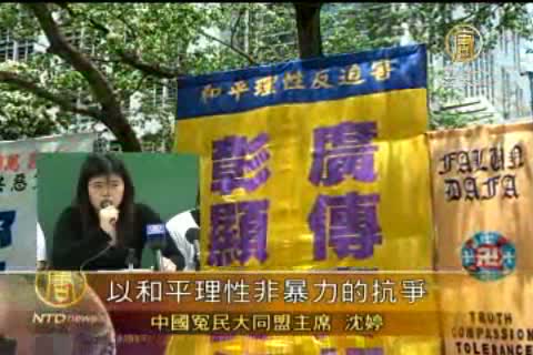 中國冤民大同盟主席 沈婷:「我想法輪功學員的精神,值得我們訪民驕傲的,我希望所有的訪民要像法輪功一樣,以和平、理性、非暴力的抗爭來爭取自己的利益。」