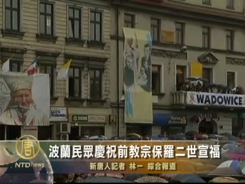 【新唐人2011年5月2日訊】5月1號,梵蒂岡羅馬天主教庭為已去逝的約翰保羅二世(Pope John Paul II)教宗宣福,而這將是給保羅二世封聖的前奏。在保羅二世出生的波蘭南部城市瓦多維採,幾千人觀看了宣福儀式的直播,為他而感到自豪。