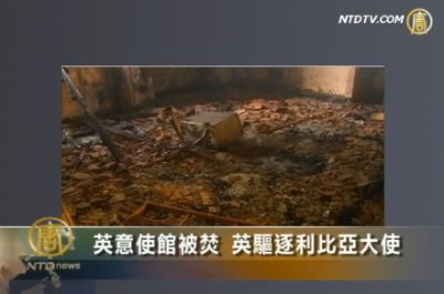 【新唐人2011年5月2日訊】星期天(5月1號),英國和意大利駐利比亞大使館,遭到襲擊,其中英國大使館幾乎被焚燬,引來國際社會的強烈反饋,包括英國外交大臣黑格、美國國務院發言人唐納等,相繼聲明,指責卡扎菲違背國際義務,沒有保護外交使團。