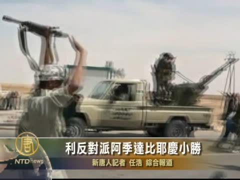 【新唐人2011年5月10日訊】星期一(5月9號),利比亞反對派在重鎮阿季達比耶外40公里處的前線獲得勝利。當天他們返回阿季達比耶,慶祝這一小勝。