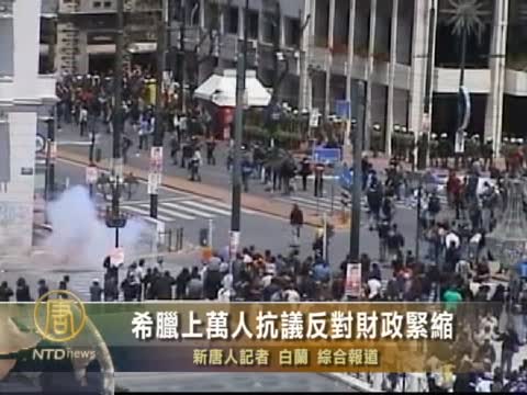 【新唐人2011年5月12日訊】希臘首都雅典星期三有上萬人參加了抗議活動,抗議政府實施的財政緊縮計劃。