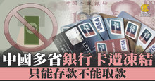 中國多省銀行卡遭凍結 只能存款不能取款