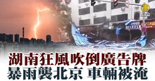 湖南狂風吹倒廣告牌 暴雨襲北京 車輛被淹