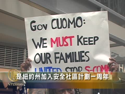 【新唐人2011年5月19日訊】5月18日是紐約州加入“安全社區”移民執法計劃一週年,紐約多個移民權益團體在州長庫默的辦公樓前舉行集會,呼籲庫默退出這項計劃。請看本臺記者的報導。