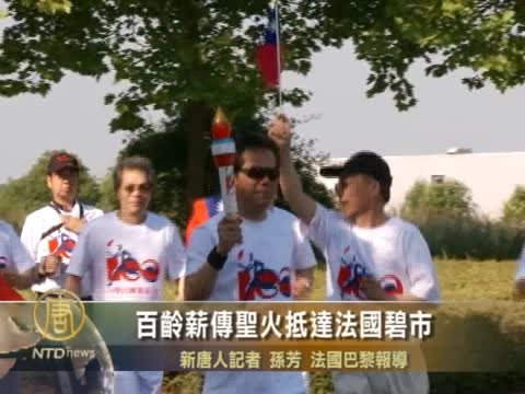 【新唐人2011年5月24日訊】“聖火傳承—慶祝中華民國建國百年”活動自孫中山先生革命起源地夏威夷檀香山出發,5月22日抵達法國大巴黎地區碧西聖喬治市,旅法僑團歡聚一堂,見證代表自由民主人權的聖火傳遞。