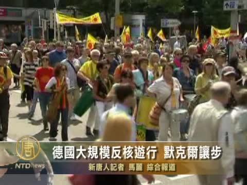 【新唐人2011年5月29日訊】5月28號,20個城市的16萬德國人走上街頭,抗議政府使用核能。面對日本的災難和本國民眾的呼聲,德國總理默克爾表示支持關閉核電站計劃。