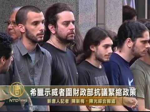 星期五清晨,大約200名來自共產黨領導的希臘全工人戰鬥陣線的示威者,圍堵了希臘財政部的入口。他們爬上樓頂,挂起橫幅,要求全國罷工,抗議政府的緊縮政策。