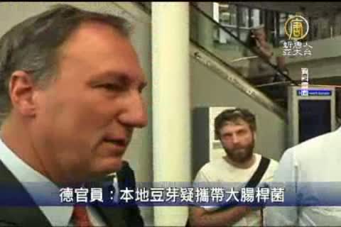 【新唐人亞太台2011年6月6日訊】來關心國際重要訊息。以德國為中心的歐洲大腸桿菌疫情目前已經造成至少22人死亡,1000多人染上溶血性尿毒綜合症。有官員表示,目前當局懷疑本地產的豆芽可能是大腸桿菌的攜帶者。