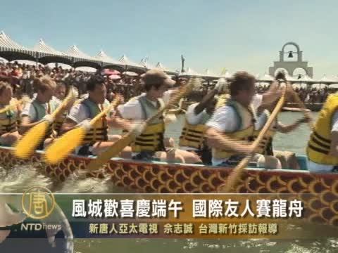 【新唐人2011年6月7日訊】每年端午都會舉辦龍舟競賽的新竹市,今年不僅吸引64個團體參加,就連新竹市長也親自下場,與外國選們一起體驗龍舟競速,請看我們的報導。