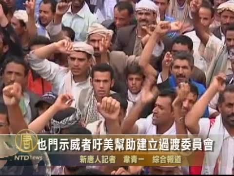 【新唐人2011年6月12日訊】也門反政府抗議者週日繼續在首都薩那舉行示威,他們表示總統薩利赫已經垮臺,呼籲美國等西方國家幫助建立一個過渡委員會。