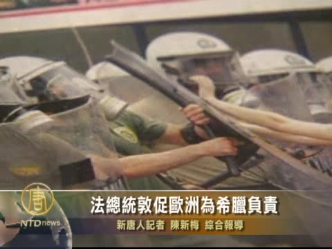 【新唐人2011年6月16日訊】當歐洲各國政府試圖尋求解決希臘危機之際,法國總統薩爾科齊(Nicolas Sarkozy )星期四(6月16日)呼籲歐洲為希臘負責,為歐洲的利益要堅定支持希臘。