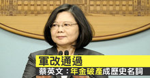 2018-06-21 20:59:50今天的政治焦點,帶您來看到,立法院昨天(20日)深夜,三讀通過軍人年改。總統蔡英文,今天下午發表談話,數度表達對軍公教人員的感謝,除此之外蔡英文也說,未來會用同樣堅定的態度,推動所有國家的重要改革。