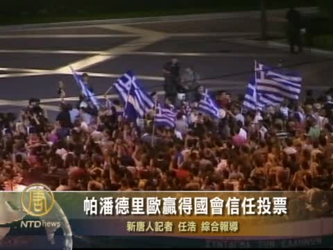 【新唐人2011年6月22日訊】星期二(6月21號),剛剛重新組閣的希臘總理帕潘德里歐,以12票之差,贏得國會的信任投票。