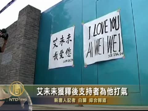 【新唐人2011年6月24日訊】剛剛在一天前獲得假釋的中國異見藝術家艾未未的支持者星期四到他的住所附近對他表示支持,他的被關押一直得到國內外的強烈關注。國際人權組織批評中共在處理他的案件時漠視法律。