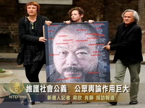 【新唐人2011年6月27日訊】中國藝術家和維權人士艾未未近日被當局假釋回家,外界普遍認為這是中共當局用以緩解長期以來的國際社會輿論壓力。曾因維權而被中共當局判刑後獲保外就醫的大陸毒奶粉受害兒家長趙連海指出,社會公眾的輿論力量對維護社會的公義作用巨大。
