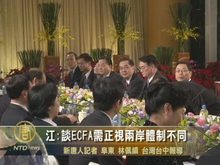 2009-12-22 20:17:03兩岸兩會第四次江陳會談22號上午首度針對兩岸經濟合作架構協議(ECFA)交鋒,海基會董事長江丙坤表示,在推動的過程當中,必須嚴肅正視兩岸總體經濟規模和體制的差異性﹔陳雲林則依舊強調ECFA是純粹的經濟議題。