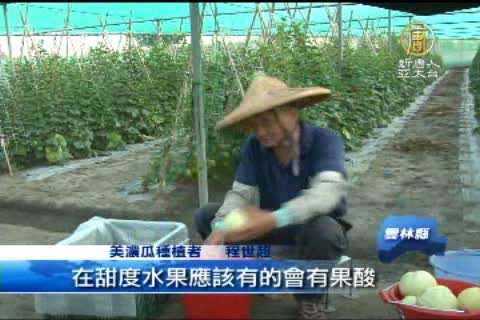 【新唐人亞太台2011年6月28日訊】看過長在棚架上的美濃瓜嗎?在雲林西螺就有這麼一位第一次當農夫,就選擇難度高的棚架網室來栽種美濃瓜的程世超,經過七十天的風吹日曬後,不但成功上市,在價格上也是一般傳統美濃瓜的一倍,他是如何辦到的呢? 一起來看看。