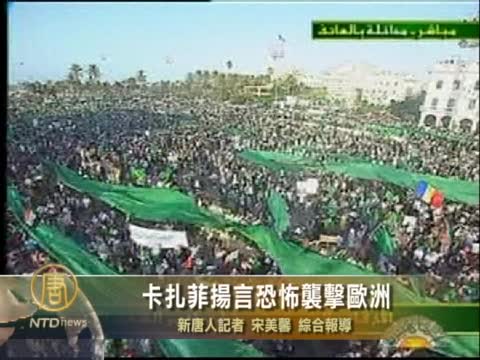 【新唐人2011年7月2日訊】7月1號(星期五),利比亞獨裁者卡扎菲透過國家電視臺,揚言要對歐洲國家採取恐怖襲擊報復。當天,班加西至少有2千人走上街頭,要求歐洲把凍結的卡扎菲資產交給反對派控制的全國過渡委員會。