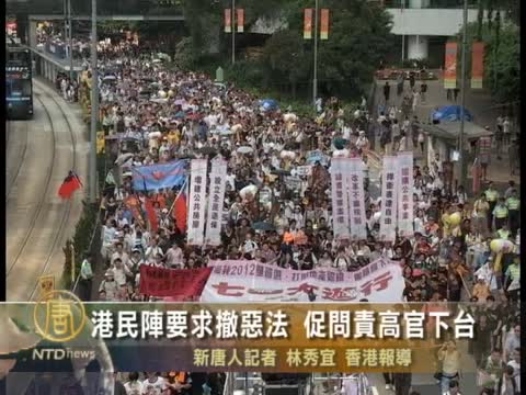 【新唐人2011年7月6日訊】香港民間人權陣線星期二遊行前往政府總部,抗議政府就立法會出缺遞補機制草案進行假諮詢,並要求政府立即撤回草案,以及有關官員問責下臺。