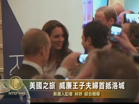 【新唐人2011年7月9日訊】英國劍橋公爵伉儷--威廉王子及凱特王妃在結束了加拿大卡爾加里的訪問之後,於星期五下午抵達美國洛杉磯,開始了美國訪問的第一站。英國駐洛杉磯領事館舉辦了接待儀式和晚宴,歡迎王子夫婦到訪。