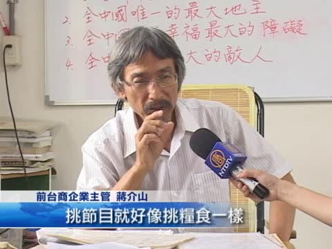 前企業主管 蔣介山:「新唐人這個電視臺都在揭發(共產黨)這些醜陋面,也在介紹闡揚這人性的光明面,我希望台灣人,有更多人來看新唐人。看了新唐人以後,你至少知道整個世界在發生甚麼事。立足台灣、放眼天下!」