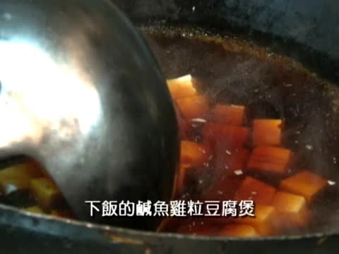 切成丁狀的白色豆腐,在滾水中不停抖動,淋上醬油增添風味,粵菜師傅冼偉昌,正準備做出一道下飯的「鹹魚雞粒豆腐煲」。