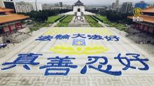 台灣5千人排字慶法輪功洪傳30年 外國遊客駐足