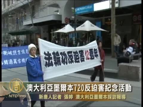 澳大利亞墨爾本的法輪功學員在市中心的城市廣場,舉行了大型720反迫害紀念活動,呼籲中共立即停止對法輪功長達12年的殘酷迫害。