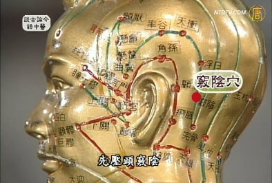 而且它是井穴,所有的元氣都從這兒出發來,我們要照西醫的講法,它是最敏感的地方,手指間那兒都是敏感的地方,所以我們說把握一個東西,就是要知道它的竅門,其實這個竅,足竅陰很好玩喔,這個膽經它有對應,頭也有竅陰,頭部也有竅陰,也有一個穴道叫竅陰,它就在這耳朵後面,也是膽經,所以它是對稱的,是不是腳上的腳痛,要按壓頭上的竅陰呢,應該也有效,因為我們一般說頭痛,一般都是把氣引下來,