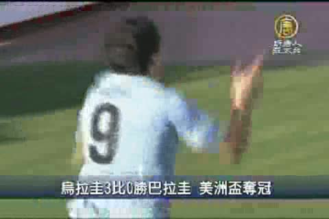 【新唐人亞太台2011年7月25日訊】星期天(24號),烏拉圭隊在2011美洲盃足球決賽上,以3:0完勝巴拉圭,第15次捧起冠軍獎盃,更超越阿根廷,成為南美獲得美洲盃冠軍次數最多的球隊。