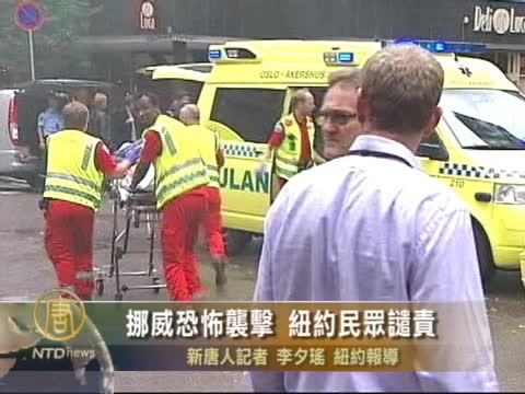 發生在首都奧斯陸市中心及郊外小島的爆炸和槍擊事件造成近百人死亡,給挪威帶來了巨大陰影。紐約民眾對這場血腥行為表示譴責。