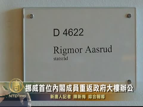 【新唐人2011年7月27日訊】星期三(7月27日),挪威政府管理與改革部長阿斯伍德(RIGMOR AASRUD)成為首位回到政府大樓辦公的內閣成員,她在接受採訪時就挪威得到的支持向全世界的人們表示感謝。