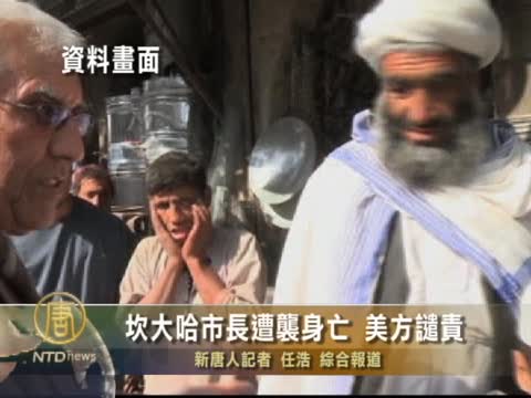 【新唐人2011年7月28日訊】7月27號(星期三),阿富汗坎大哈市長哈米迪(Ghulam Haidar Hamidi),在坎大哈被自殺式炸彈炸死。對此,美國官員譴責了這次襲擊,表示這說明塔利班勢力已被削弱只能靠實施暗殺。