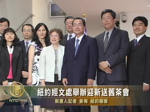 【新唐人2011年7月28日訊】駐紐約臺北經濟文化辦事處26日下午在該處一樓大廳舉辦迎新送舊茶會,中華公所主席伍權碩,中華總商會會長於金山,僑務委員江文輝及紐約僑界人士近百人出席了茶會。