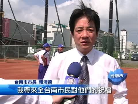 臺南市市長賴清德:「(八月初)即將到美國比賽,我帶來全臺南市民對他們的祝福,希望他們能凱旋歸來。」