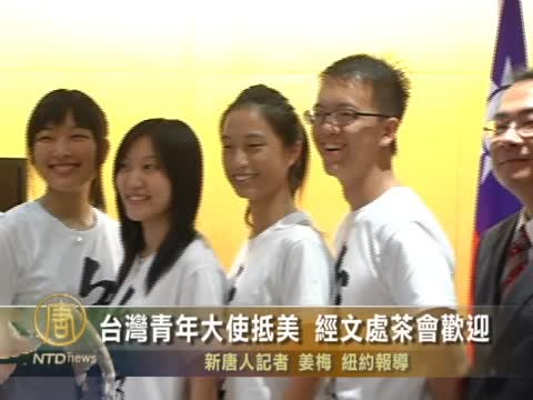 【新唐人2011年7月29日訊】主播:為鼓勵台灣青年積極參與外交工作,由中華民國外交部主辦的國際青年大使交流計劃所選拔出的台灣大學國際青年大使一行七人今天下午抵達紐約,經文處在該處舉行歡迎茶會,請看報導。