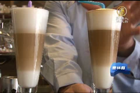 古坑餐廳第二代業者 沈漢緯:「牛奶跟奶泡會分離,分離的時候,我們咖啡倒下去的時候,他會做一個區隔,區隔開來這樣子,開始慢慢浮現出來。」