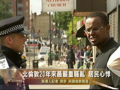 【新唐人2011年8月8日訊】北倫敦託特姆汗區8月6號晚發生了縱火和砸、搶等,20多年來最大規模騷亂,造成大約30人受傷,警方也逮捕了超過50人。7號,仍有小規模騷亂髮生,但警方已經控制主動權,當地居民談起騷亂,心有餘悸。請看本臺記者發來的報導。