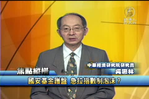 【新唐人亞太台2011年8月9日訊】台股今天早盤再重挫超過4百點,但11點過後,政府基金進場護盤,午盤過後數度小幅翻紅,可惜部分權值股尾盤再跌,終場以7493.12點作收,下跌59.68點,究竟政府啟動四大基金與國安基金進場護盤對股市穩定發揮的作用有多大?今天的焦點縱橫,請到中華經濟研究院研究員吳惠林教授,為我們作深度分析。