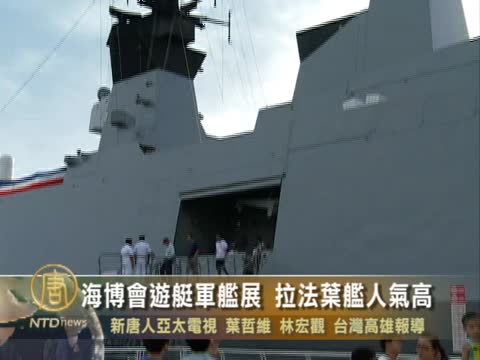 【新唐人2011年8月15日訊】2011高雄海洋博覽會暨遊艇展,13號起一連4天在光榮碼頭登場,豪華遊艇和海軍各式艦艇停靠岸邊,讓民眾登艦參觀,其中拉法葉艦是人氣最高的船艦。 帶您跟著我們的鏡頭,一起去看看。