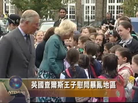【新唐人2011年8月18日訊】英國查爾斯王子和他的妻子卡米拉(Camilla)星期三慰問了遭暴亂襲擊的地區─託特納姆,在那裏王子夫婦會見了社區成員和緊急服務人員,這裡是暴亂亂首度爆發的地區。