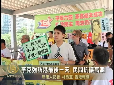 【新唐人2011年8月19日訊】星期四是中共副總理李克強訪港最後一天,他下午為新政府總部主持揭幕儀式時,民間的抗議活動也達到最高潮。多個民間團體到場示威,抗議中共打壓維權人士,侵犯宗教信仰自由,並要求平反六四、推動政治改革和改善人權狀況。