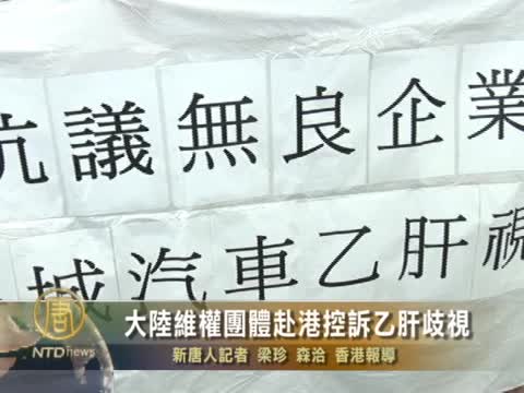 【新唐人2011年8月22日訊】大陸近年來有上億乙肝帶菌者,普遍在招收工作時受到歧視。最近,大陸一個乙肝維權團體派出代表到香港,控訴河北一家公司對員工進行乙肝歧視,要求取消一切歧視性人事政策。請看報導。