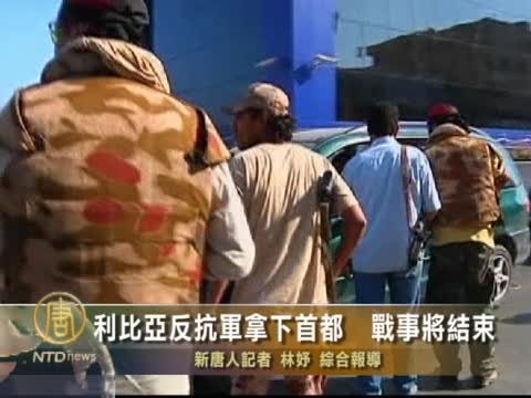 【新唐人2011年8月22日訊】利比亞反抗軍在北約及民眾的合作下,於星期日攻入的黎波里,星期一(8月22日)的黎波里大部分地區已在反抗軍控制之下,利比亞推翻卡扎菲統治的戰事即將畫上休止符。目前外界紛紛揣測卡扎菲的行蹤,南非外長當天否認會派飛機協助卡扎飛逃亡。