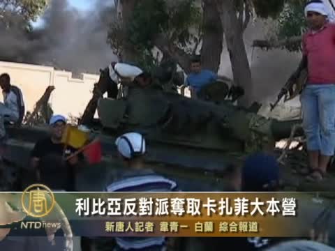 【新唐人2011年8月24日訊】星期二,利比亞反抗軍與卡扎菲軍連續第三天在首都的黎波里爆發激戰。反抗軍最終攻入了卡扎菲的阿齊齊亞官邸大院。他們砸毀了卡扎菲的雕像,並向空中鳴槍,慶祝這一重大勝利。不過,他們仍沒有找到卡扎菲及其家人的下落。