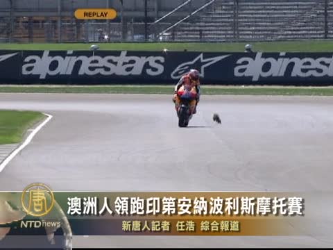 【新唐人2011年8月27日訊】美國印第安那州,印第安納波利斯摩託車大賽星期五(8月26號)拉開帷幕,澳大利亞選手斯託納(Casey Stoner),在第一天的訓練賽中拔得頭籌。